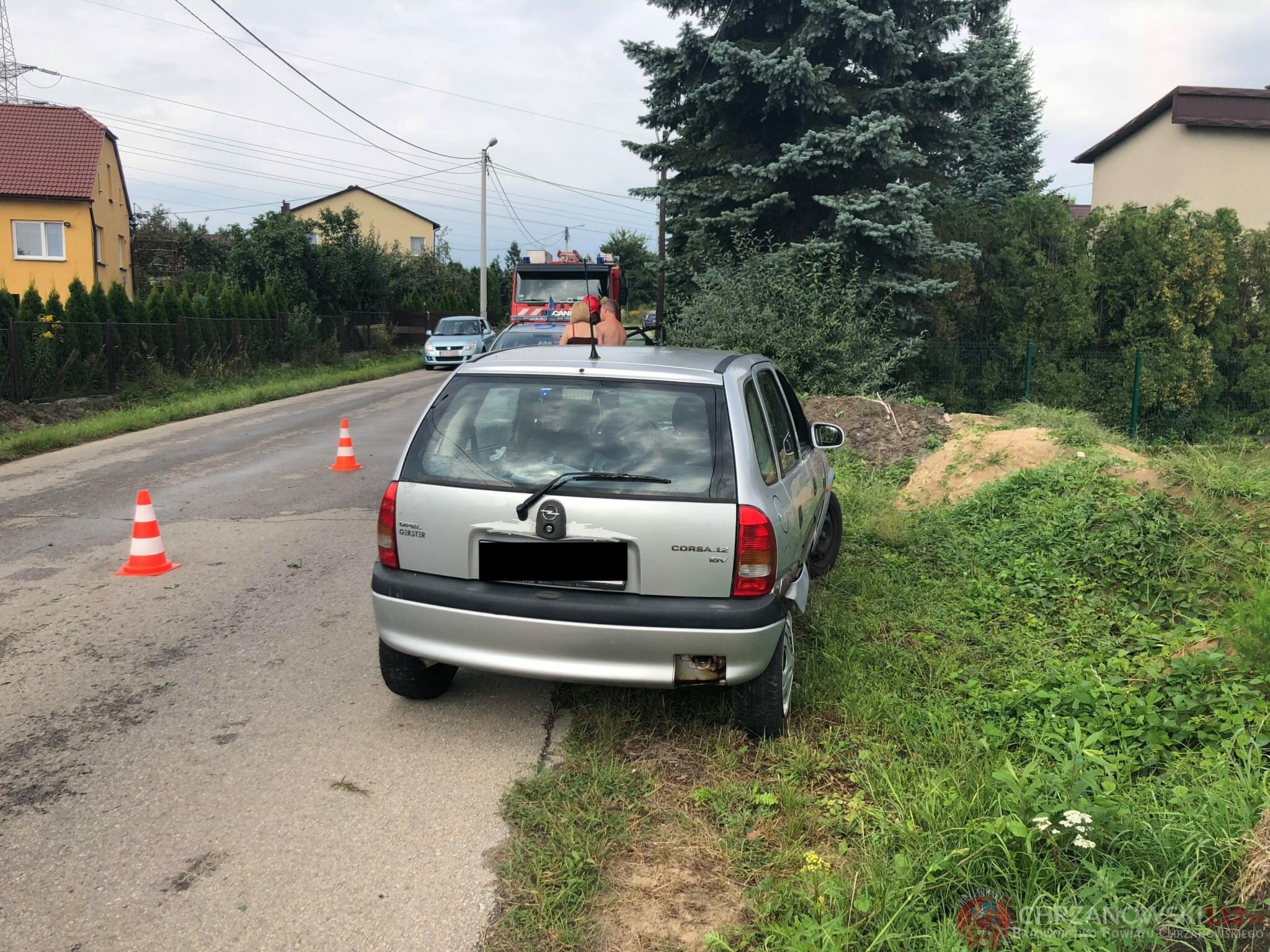 Po przybyciu służb ratunkowych na miejsce zdarzenia okazało się że mężczyzna kierujący samochodem osobowym marki Opel Corsa stracił panowanie nad pojazdem zjechał do rowu i uderzył w ogrodzenie jednej z posesji. Kierowca nie potrzebował pomocy medycznej i opuścił pojazd o własnych siłach. Do działań przybyłych na miejsce zastępów Straży Pożarnej należało zabezpieczenie miejsca zdarzenia, usunięcie pojazdu poza jezdnię oraz neutralizacja płynów eksploatacyjnych.