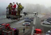 Święty Mikołaj na strażackim podnośniku przyjechał do dzieci w szpitalu!