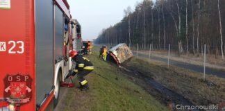 LIBIĄŻ: Osobówka wpadła do rowu na DW933, kolizja trzech pojazdów