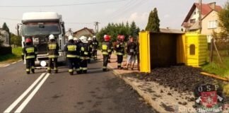 LGOTA: Ciężarówka wioząca odpady przewróciła się na bok – DW791